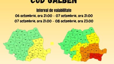 ATENȚIONARE METEOROLOGICĂ 𝐂𝐎𝐃 𝐆𝐀𝐋𝐁𝐄𝐍