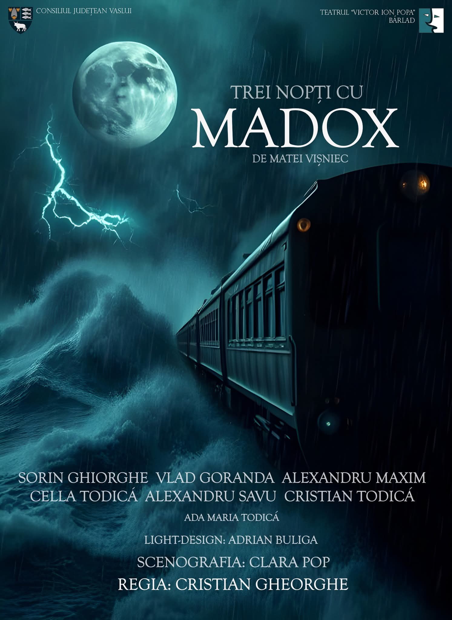 Stagiunea teatrală permanentă la Vaslui a Teatrului „Victor Ion Popa” din Bârlad continuă cu spectacolul „Trei nopți cu Madox” de Matei Vișniec, programat vineri, 30 ianuarie, de la ora 18:30.