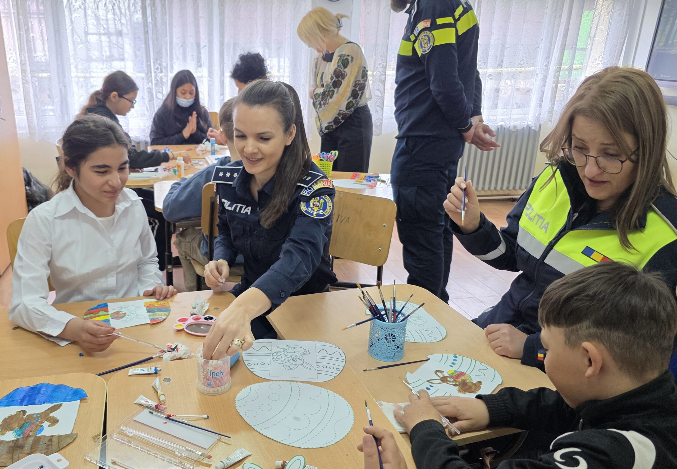 De asemenea, aceștia au participat la activitățile creative alături de copii și profesori, unde au pus în practică diverse tehnici de vopsire a ouălor de Paște și au sprijinit realizarea diverselor materiale cu specific pascal confecționate de fiecare copil.