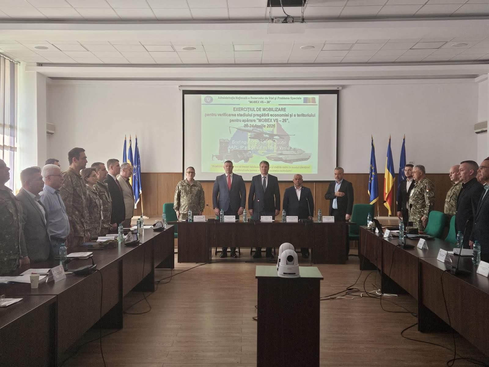 Sala mare a Consiliul Județean Vaslui a găzduit o întâlnire de lucru la care au participat autorități locale și județene, dar și alți factori de decizie, în contextul desfășurării în perioada 20–24 aprilie, în județul Vaslui, a exercițiului de mobilizare „MOBEX VS-26”. Este o activitate planificată periodic la nivel național pentru verificarea pregătirii economiei și a teritoriului pentru apărare. Acțiunea este organizată de Administrația Națională a Rezervelor de Stat și Probleme Speciale, în baza legislației privind apărarea națională și a unui plan aprobat în 2025 de Consiliul Suprem de Apărare a Țării.